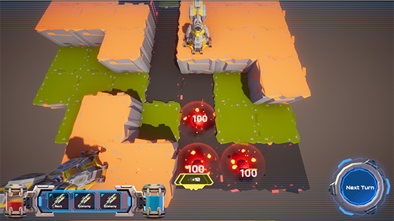- Blue: "Chargers" that charge in place for X turns before dashing forward multiple tiles at once.